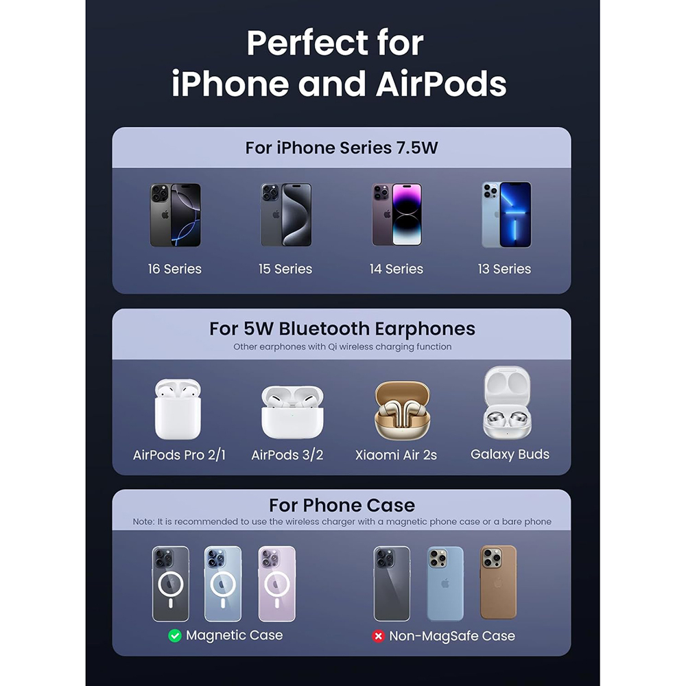 Compatibilitate: serii iPhone 12 - 16, AirPods (2/3/Pro), alte dispozitive Qi;